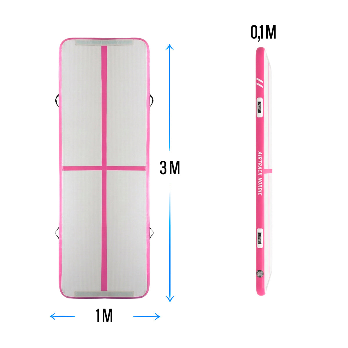 AirTrack Nordic Home er en 3 meter lang, 1 meter bred og 10 cm tyk førsteklasses AirTrack, som primært er beregnet til hjemmebrug i din stue eller i baghaven.